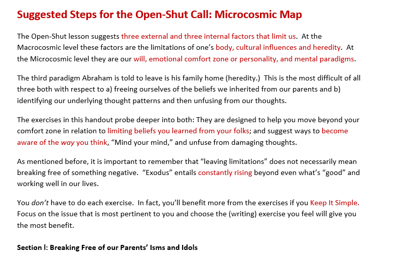 - 5 Suggested Steps: Abraham’s Journey, Thought Idols, Going Out of My Mind, Unfuse From Your Thoughts, Extending the Poems